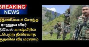 காஷ்மீரில் பயங்கரவாதிகளுடனான சண்டையில் தமிழக வீரமரணம்
